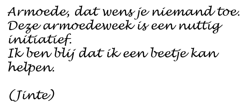Voor de acties van de Armoedeweek 2026 verwijzen we naar de pagina PROGRAMMA.
